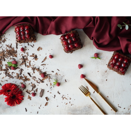 Weizenmehl (Alpha-Amylase, Ascorbinsäure), Weizenstärke, Wasser, Pasteurisiert Ei, Pasteurisiertes Milch, Zucker, Wasser, Sonnenblumenöl (Sonnenblumen, Antioxidans (E321), (E900), bittere Schokolade, pflanzliche Schlagsahne [Wasser, gehärtetes Palmöl, Zucker, Glukosesirup, Emulgator (E475), Stabilisator (E466), Säureregulator (E331), Salz], Salz, Karbonat, Backpulver, Kakao, Gelatine (Halal), Zimt, Kaffee, Gelee mit Erdbeere [Glukosesirup, Wasser, Zucker, modifizierte Stärke, Verdickungsmittel (E407), Erdbeergeschmack, Erdbeermarmelade, Säureregulator (E330), Farbstoff (Karminsäure), Konservierungsmittel (E202)], Himbeere, Glukosesirup, Zucker, Verdickungsmittel (E406, E407, E450ii), Säureregulator (E330)].