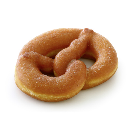 Siedegebäck aus Hefeteig in Brezelform, mit Zucker und Zimt bestreut, gebacken, tiefgefroren.
