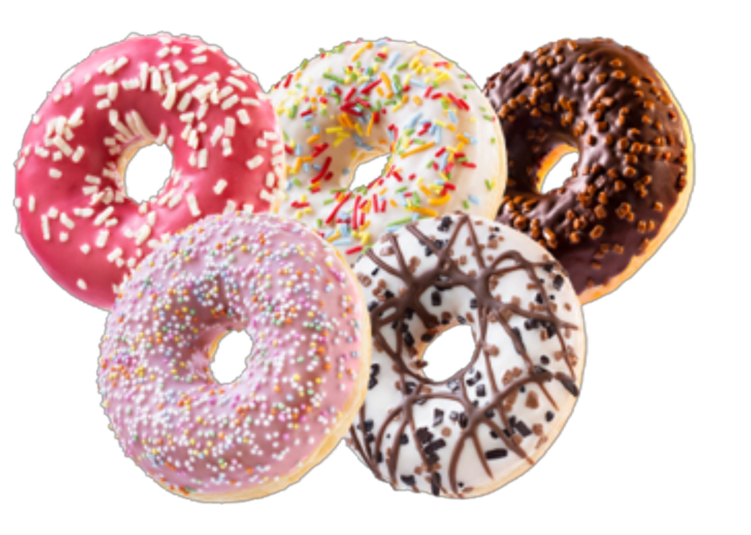 FROSTY: weißer Fettglasur mit Vanillegeschmack (14%), Flocken (3,5%) & Fettglasurstreifen (3,5%) auf Kakaobasis.