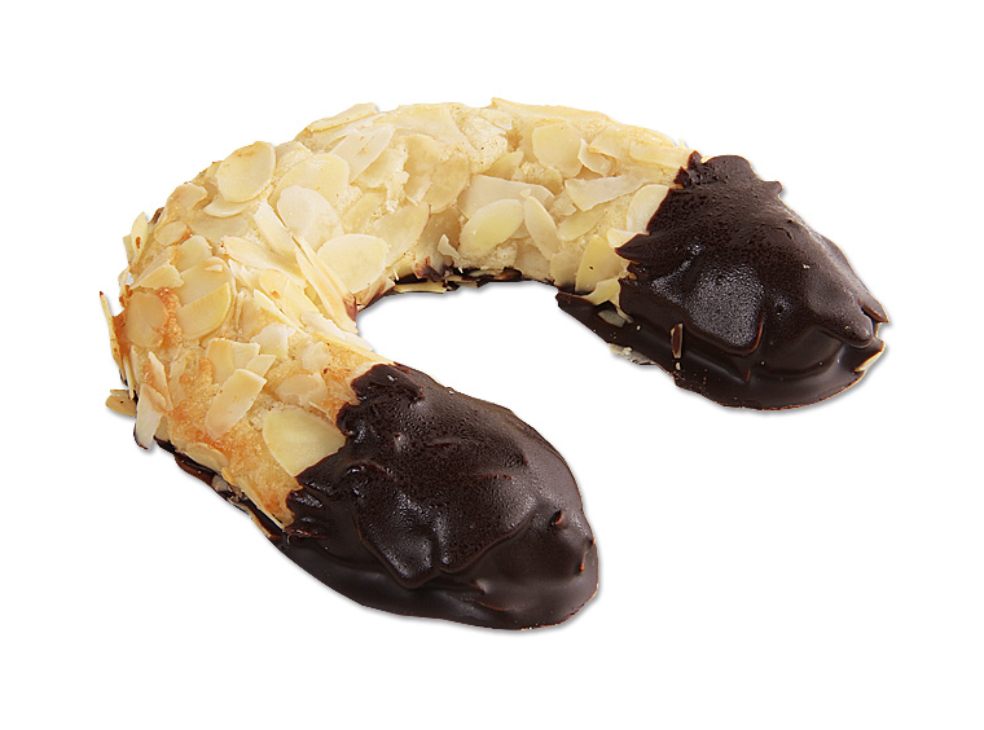 Marzipangebäck mit Mandeldekor und Kuvertüre, fertig gebacken, tiefgefroren