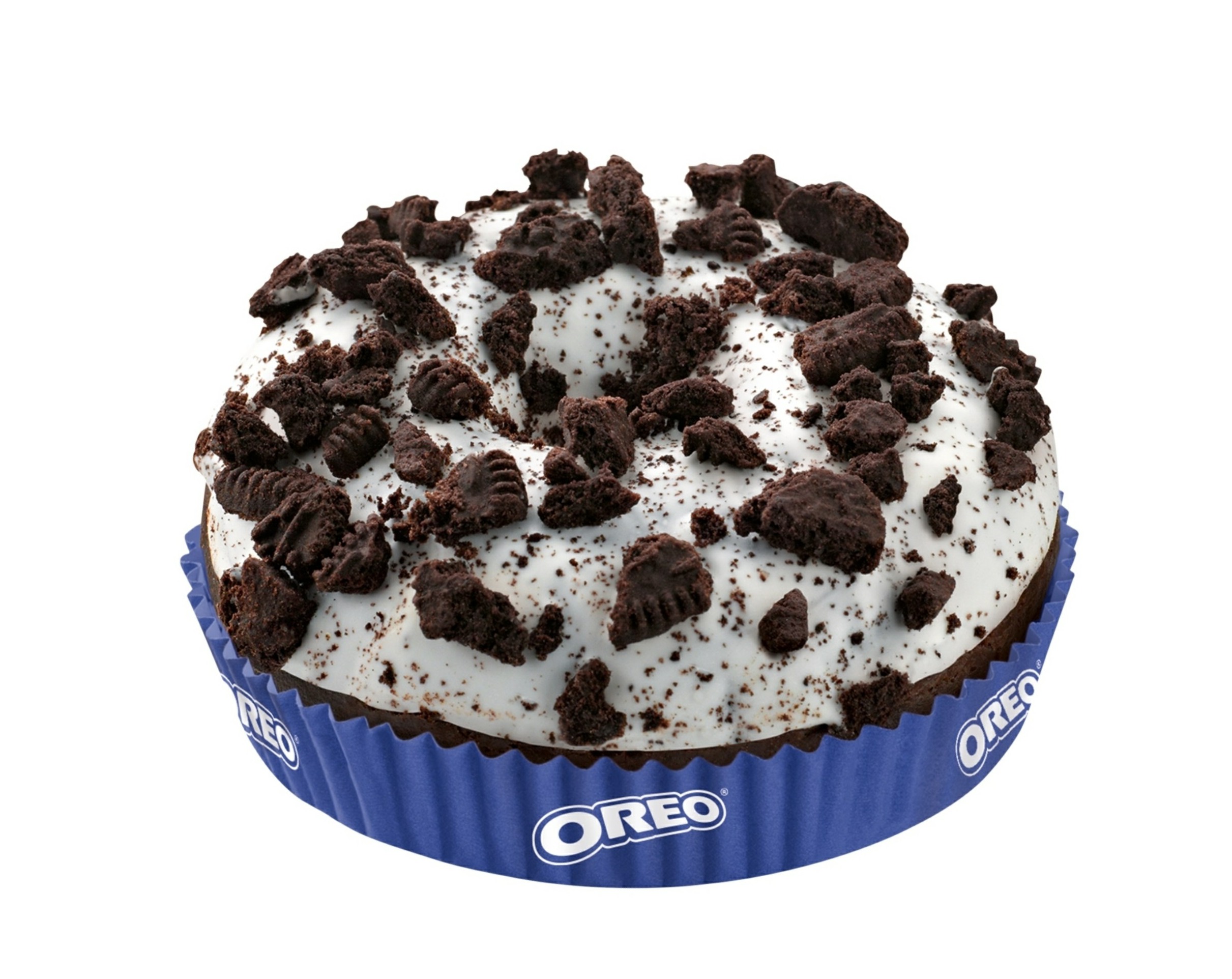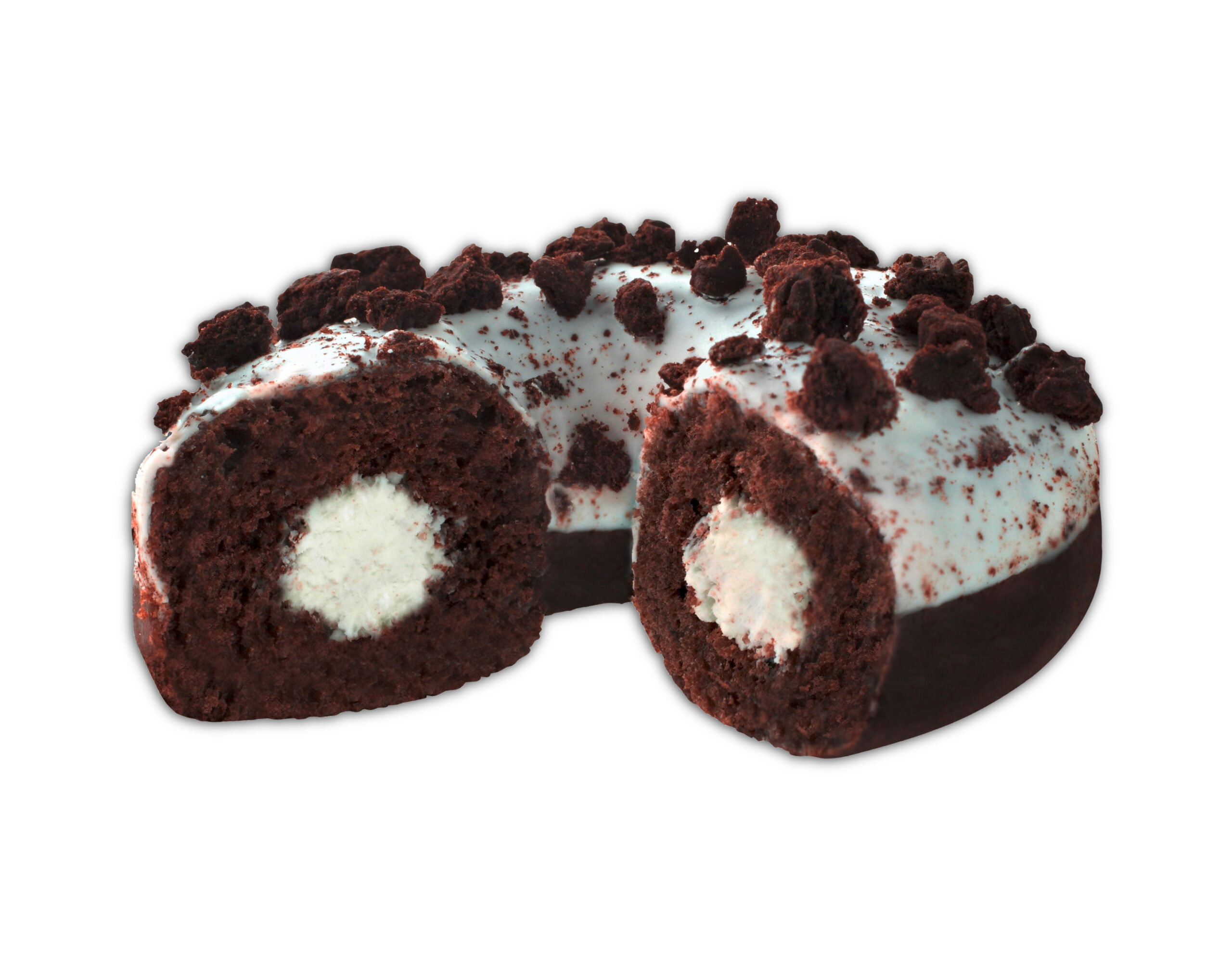Donut mit Kakao, mit 16% Cremefüllung mit Vanillegeschmack, 9,6% weißer Glasur, 8,2% Oreo® Kakaokeksstückchen, tiefgefroren